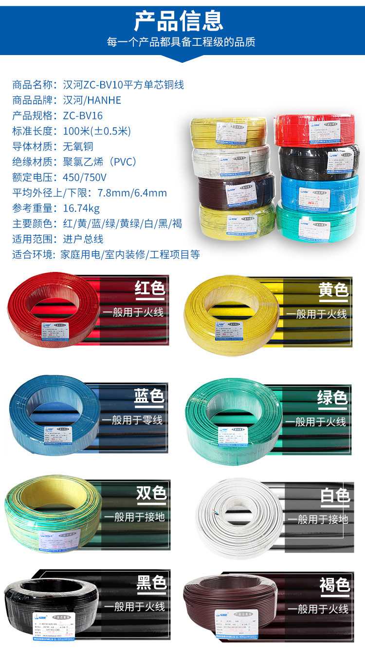 漢河電線電纜 ZC-BV16mm2單芯銅線家用入戶電線